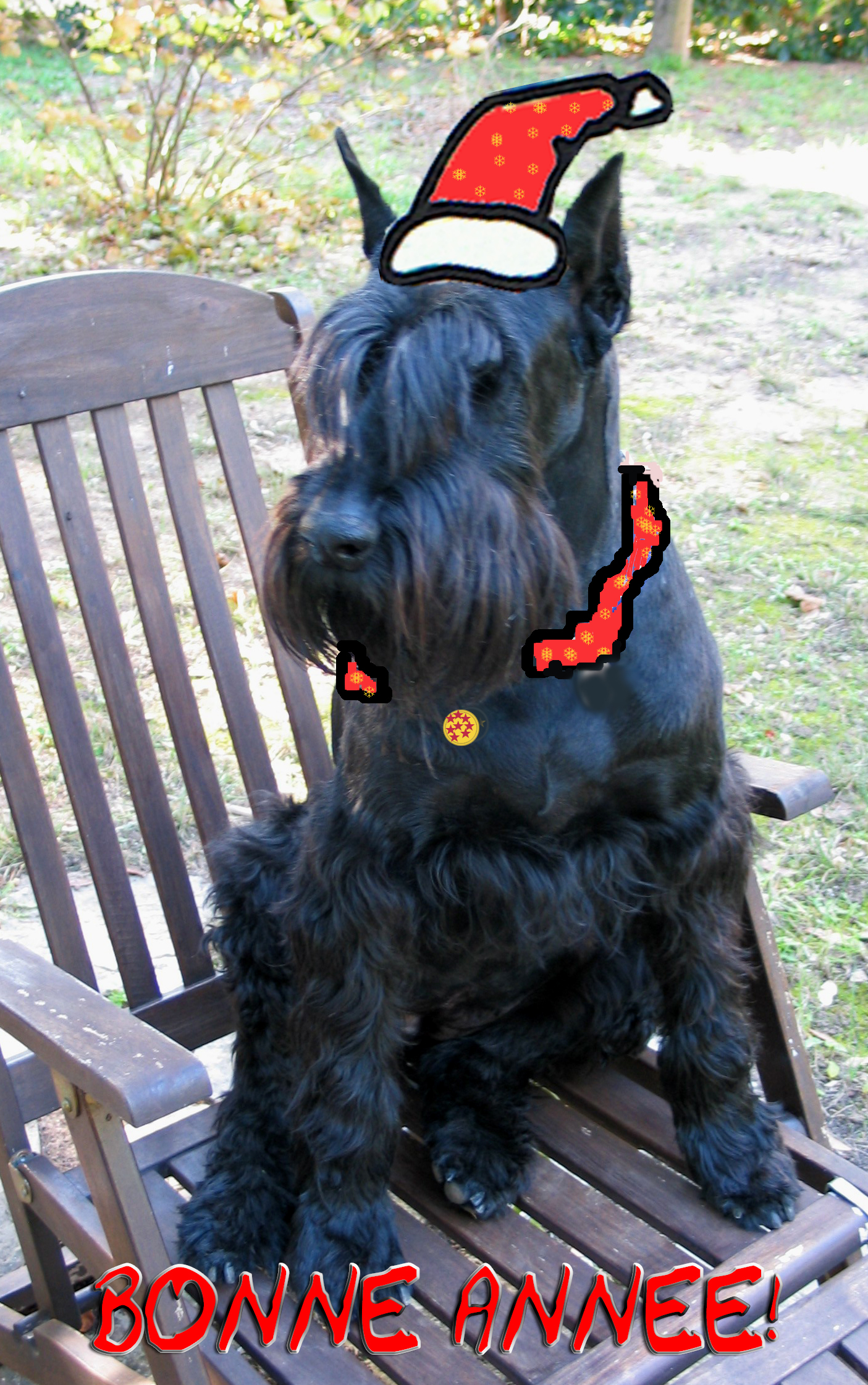 Cette Schnauzerine nommée Nasa,( car elle est auréolée depuis son enfance d'une douce lumière stellaire) possède un sens profond de perception grâce à une truffe hyper développée qui justifie le nom de sa race. Elle a connu deux siècles, ce qui ajoute à la grande sagesse de ses intuitions et impose, de ma part, écoute et attention.