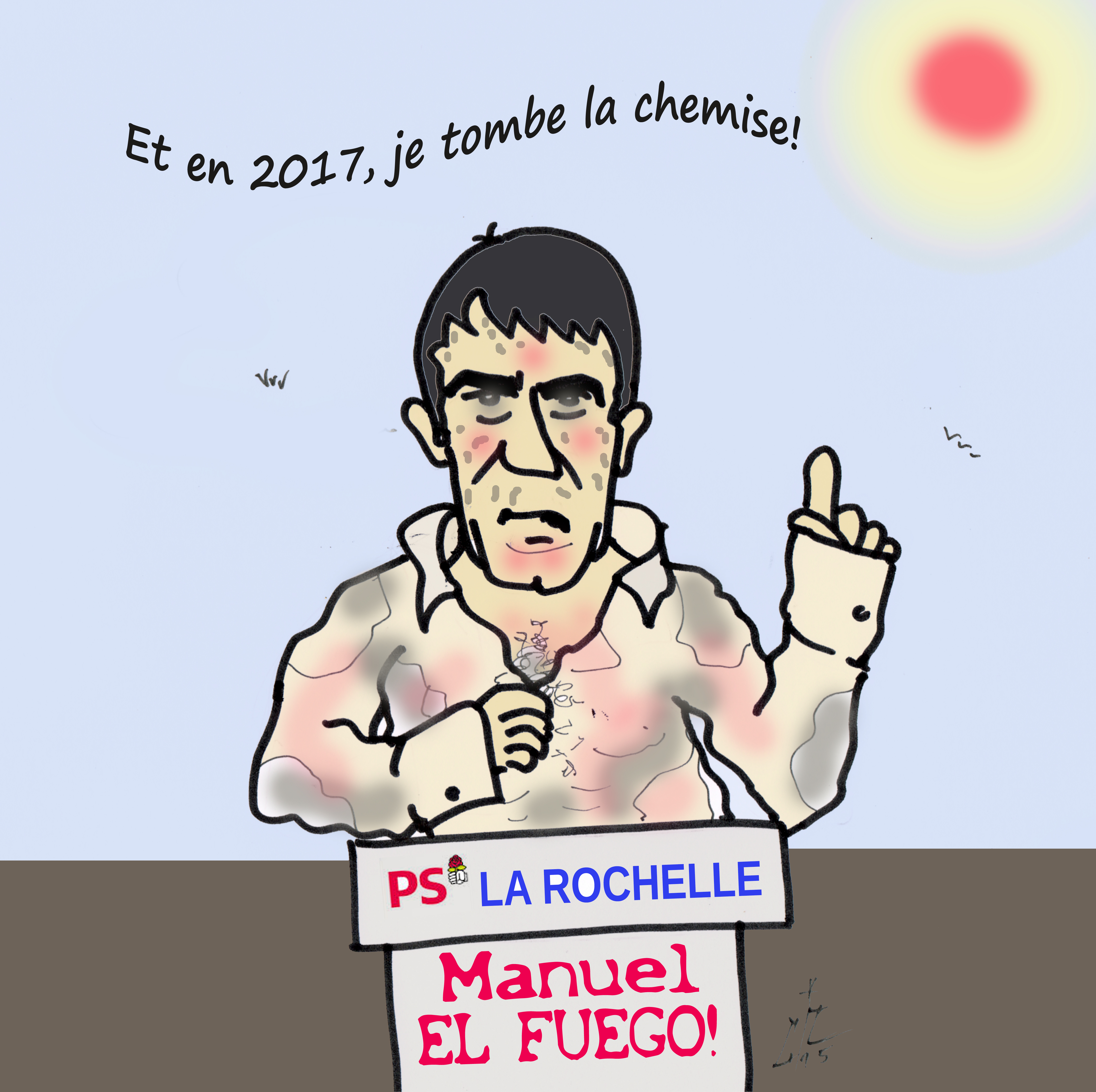 Les médias ont largement glosé ou ironisé sur la chemise de Valls durant son discours magistral et socialiste pur jus de la Rochelle. Certains au premier degré pour souligner l’engagement dynamique de l’intéressé, d’autres pour employer une métaphore particulièrement évidente en la circonstance.