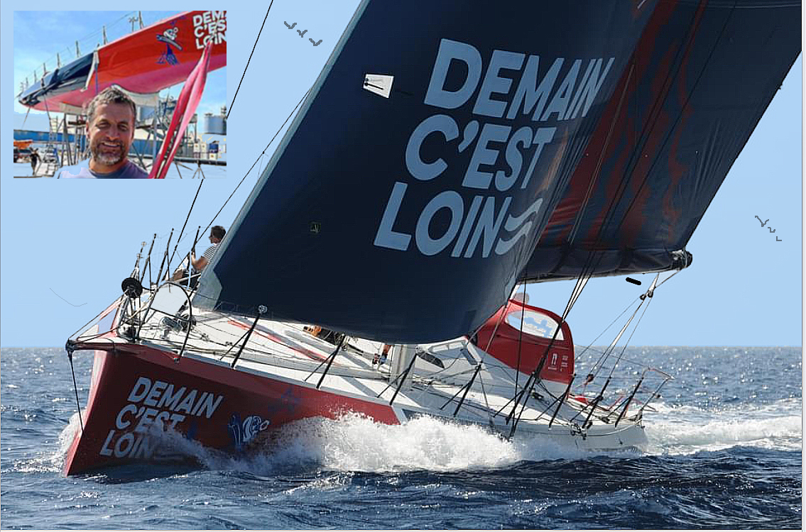 Son projet baptisé « Demain C’est Loin » est inspiré du groupe IAM, parrain de son bateau. Et le décor de sa voile, idée plus qu'originale, est l'oeuvre du célèbre artiste sétois Di Rosa.